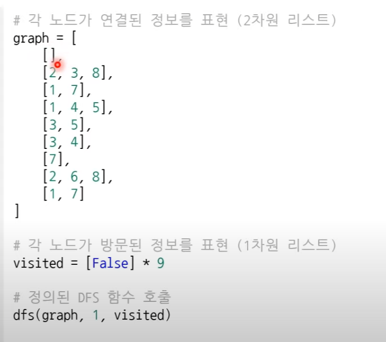 # 현재 노드와 연결된 다른 노드를 재귀적으로 방문