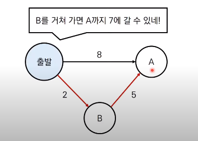# 현재 노드를 거펴서 다른 노드로 이동하는 거리가 더 짧은 경우