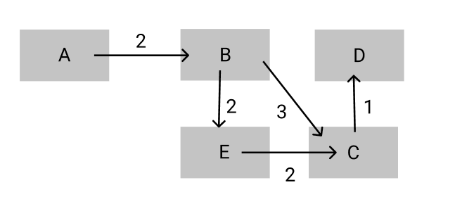 그렇다면 A에서 C로 가는 최단 경로는 어떨까요? A → B → E → C가 아닌 A → B → C 입니다.