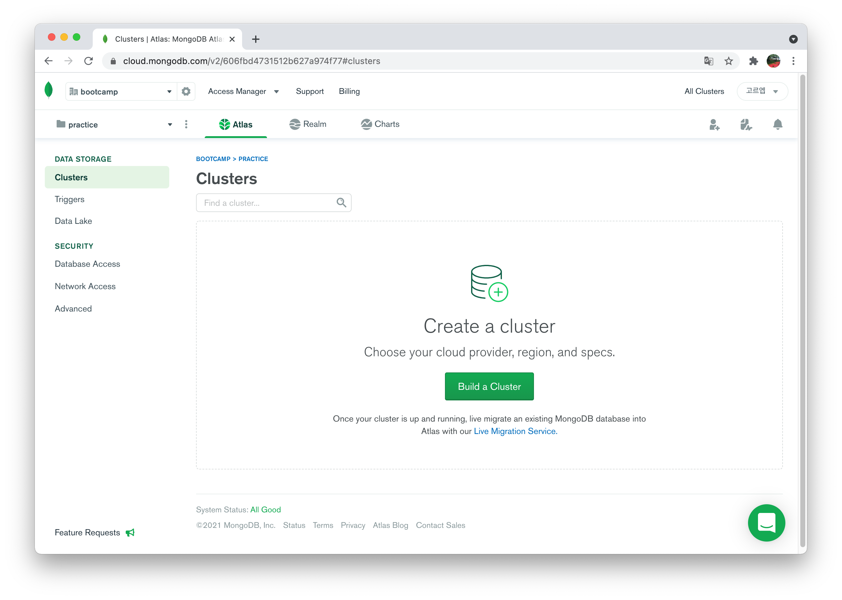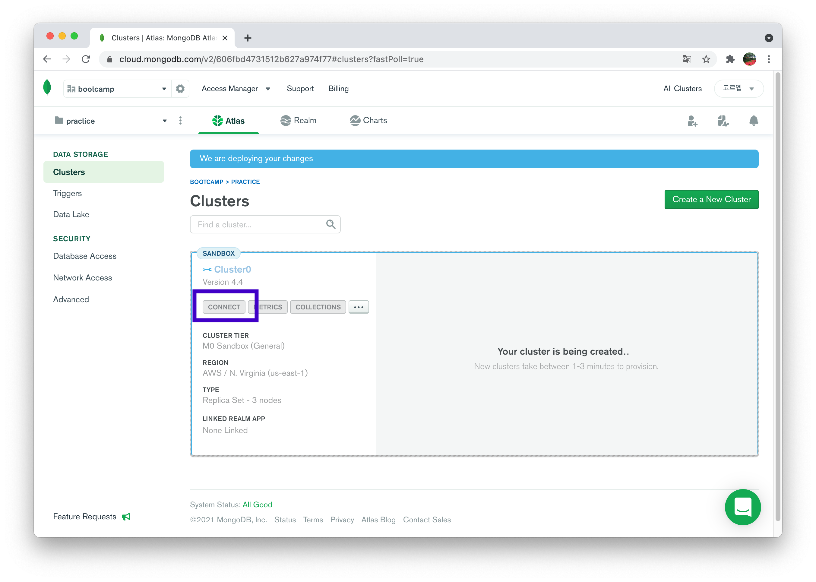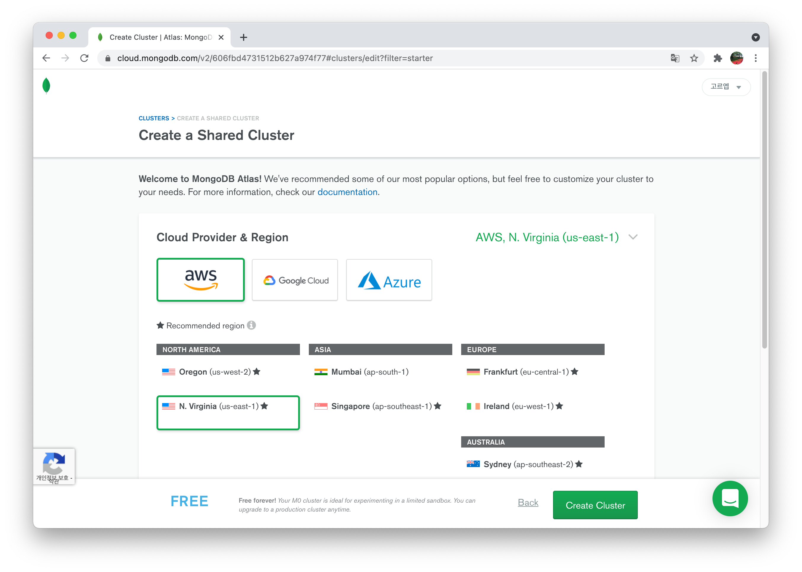 Atlas Cluster는 다음 10가지 단계를 통해 생성합니다.