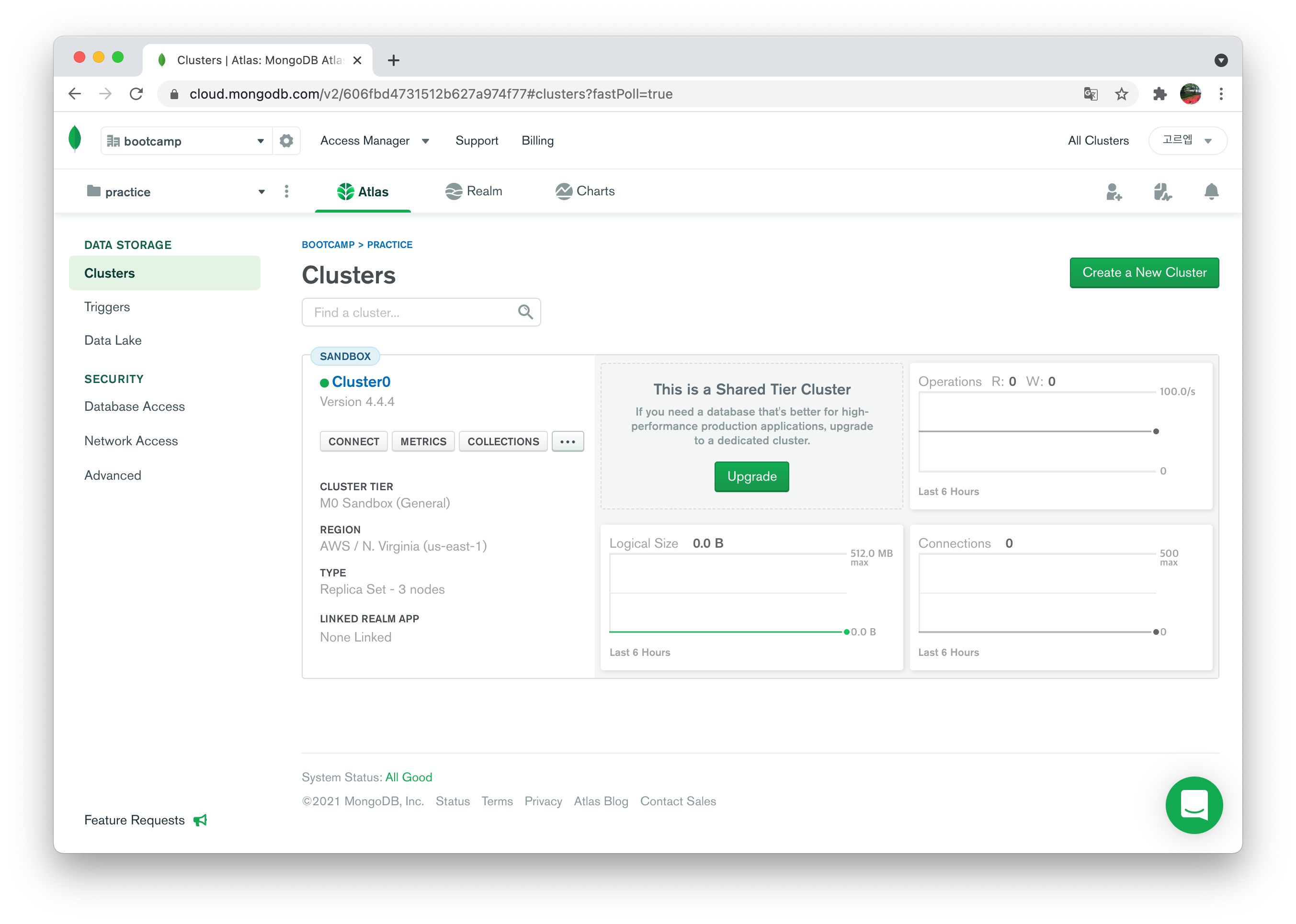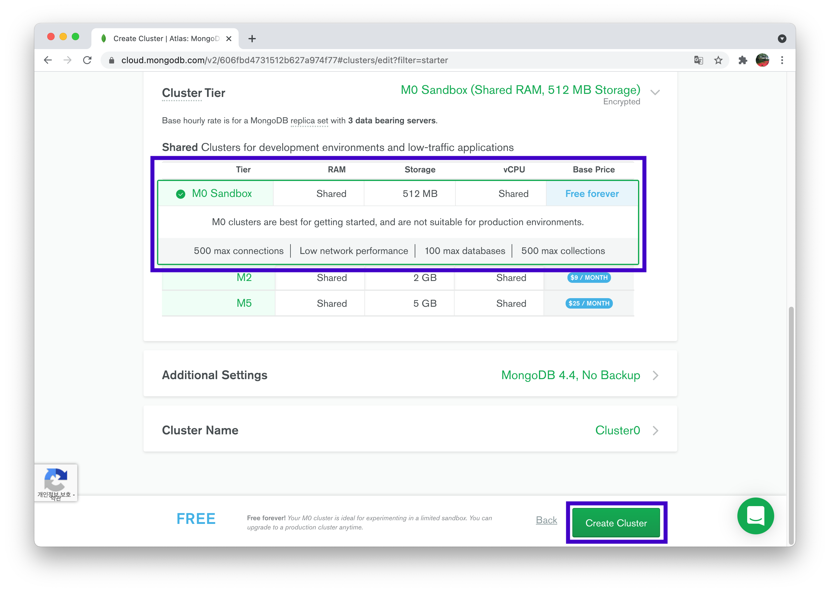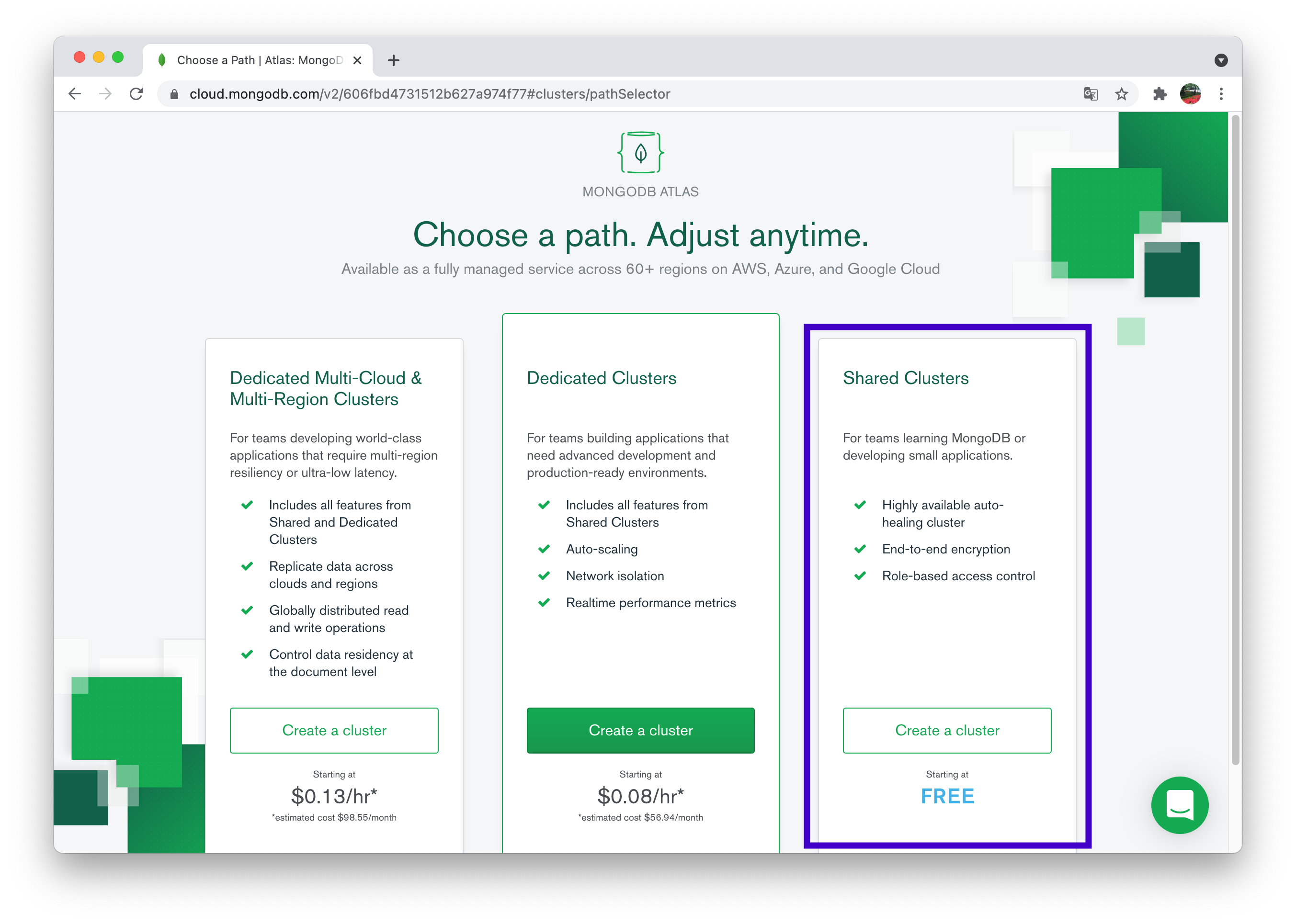 Atlas Cluster는 다음 10가지 단계를 통해 생성합니다.