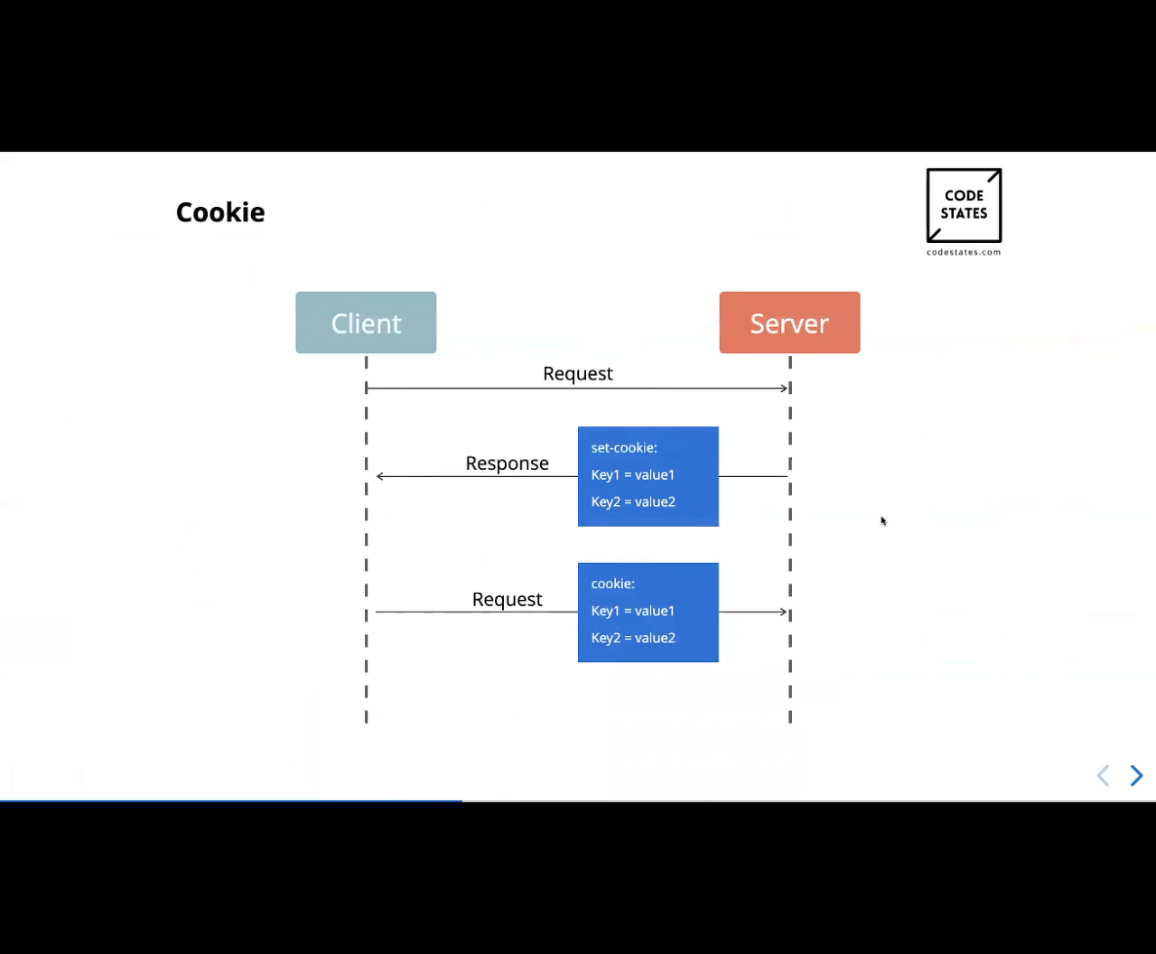 서버에서 클라이언트로 쿠키를 처음 전송하게 된다면 헤더에 Set-Cookie라는 프로퍼티에 쿠키를 담아 쿠키를 전송하게 됩니다.