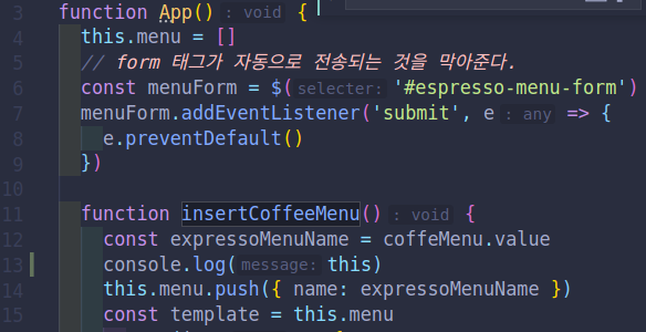 정상적으로 기능이 작동 하면서 this도 잘 출력이 됩니다.