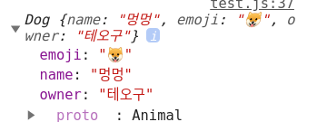 const dog = { name: '와우', emoji: '🐶', owner: teogu };