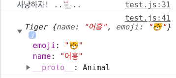 // Dog이 name과 emoji를 animal에 넘깁니다.