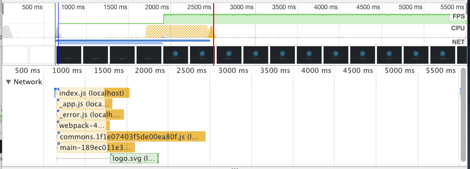background가 렌더링될 때까지 react의 경우 2초가 걸리는 반면 next의 경우 1초에 렌더링 되는 것을 확인할 수 있습니다.