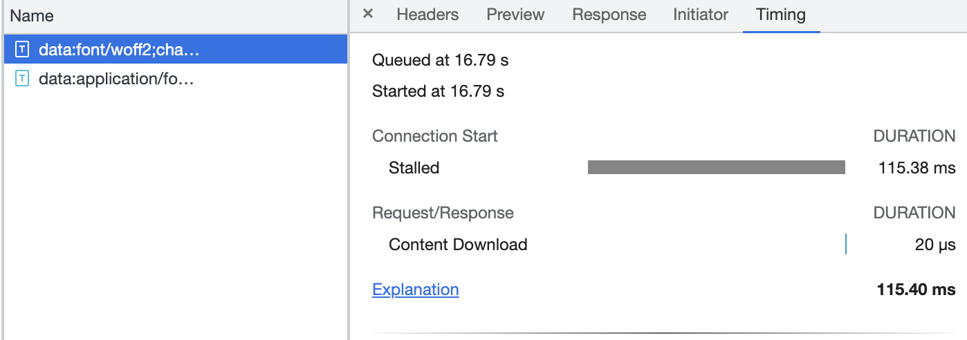 fast 3g로 비교해보면 base64인코딩의 경우 네트워크 요청을 거의 거치지 않기 때문에 더 빠르게 로딩 된다.