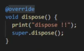 dispose에서는 사용되었던 것들을 없애줍니다. 대표적으로 text controller나 pagecontroller같은 controller를 dispose 해주어야 합니다.