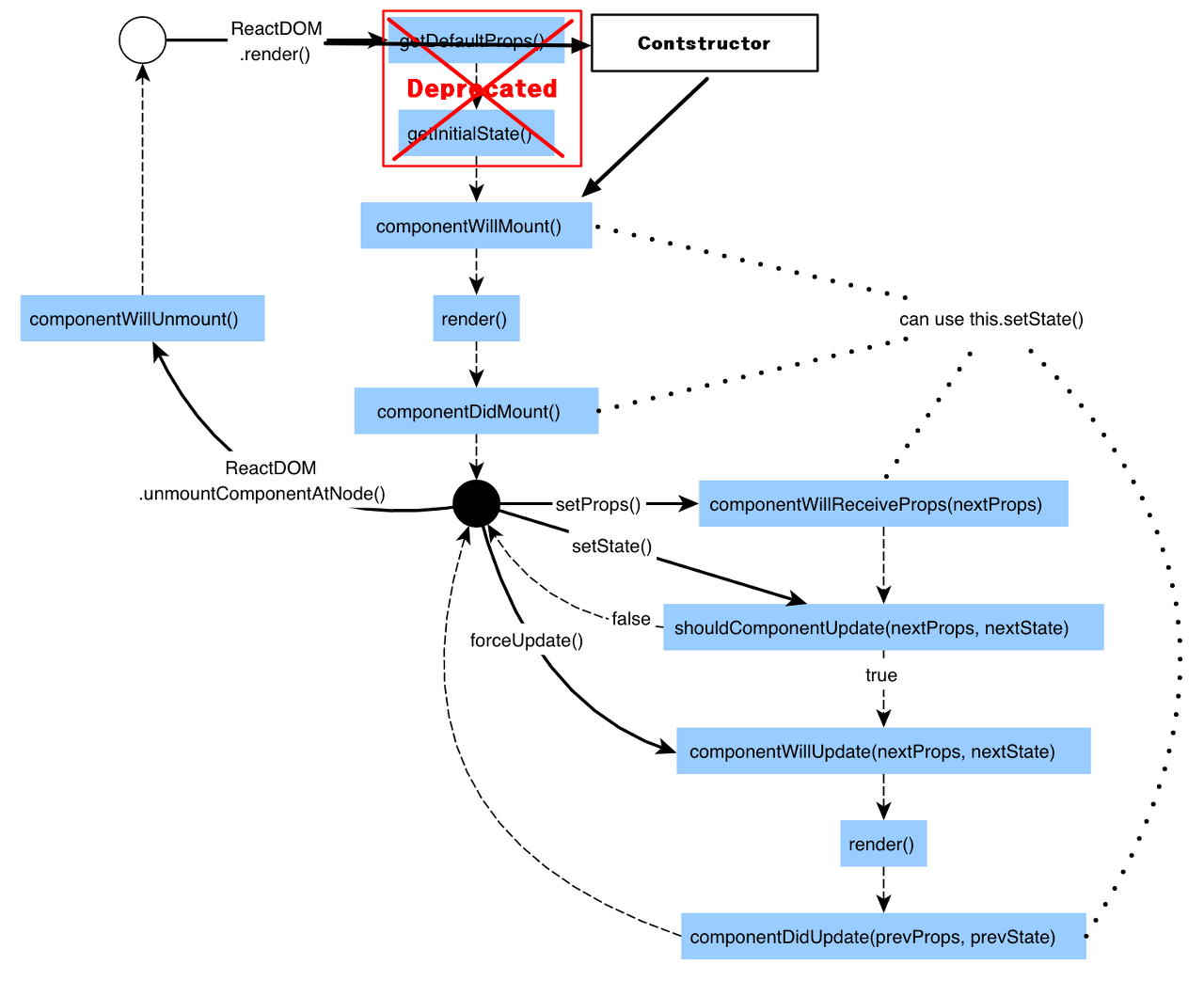 상태가 변경될 경우 shouldComponentUpdate가 먼저 호출되고 componentWillUpdate가 실행이 됩니다.