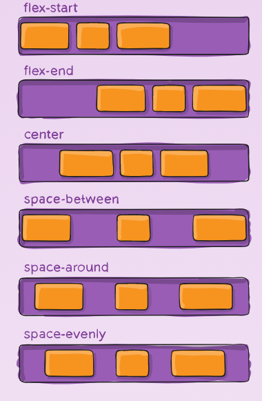 - justify-content: 주축을 따라 정렬합니다. 한줄의 모든 플렉스 항목이 유연하지 못하거나 유연하지만 최대 크기에 도달했을 때 남는 여유 공간을 분배합니다.